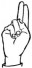 На ћирилици написано ДУЊА КЛЕМЕНОВИЋ састоји се из 14 слова [?]. Исписано ћириличном једноручном азбуком за глувонеме: